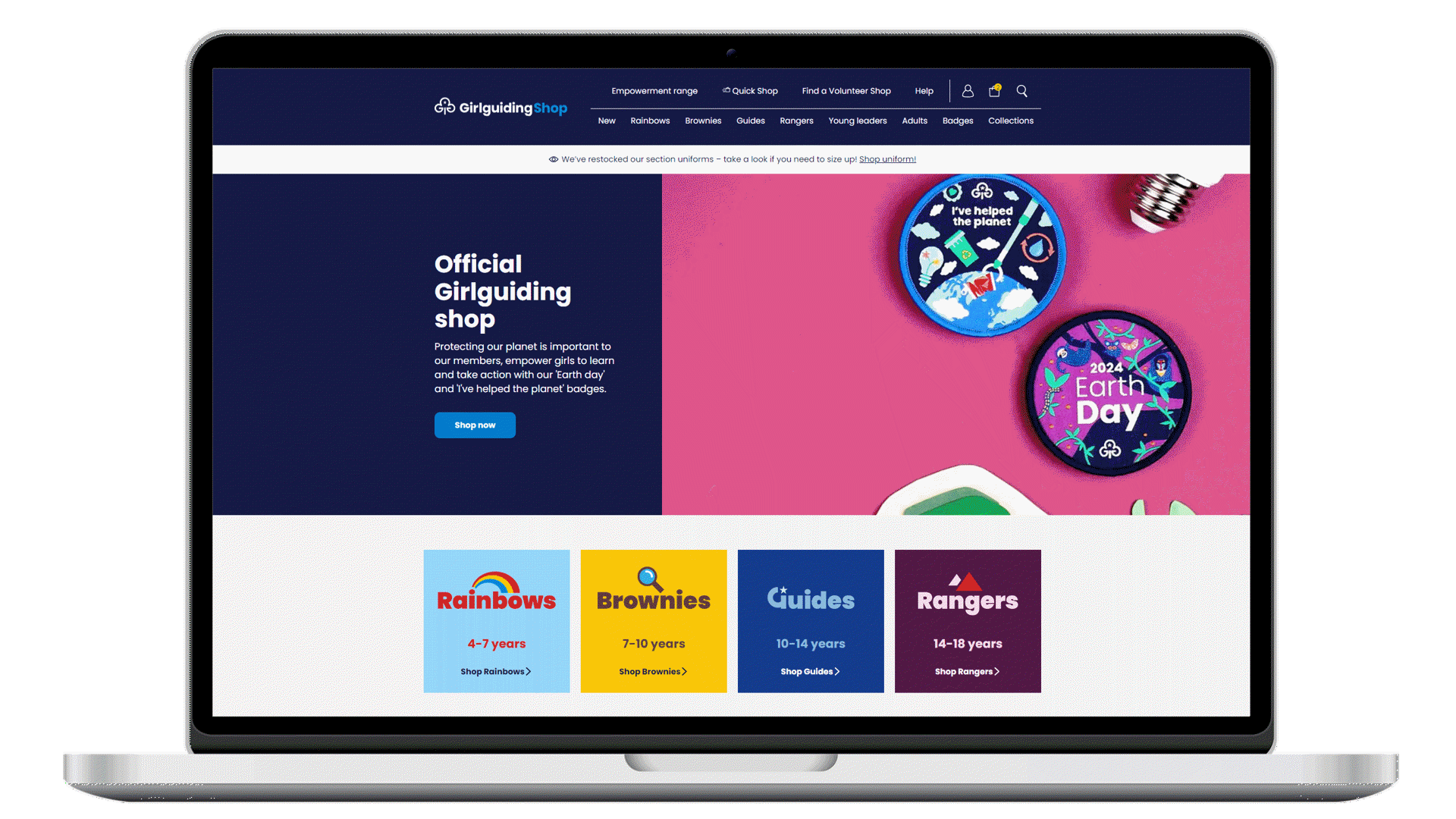 Element78 developed a brand new Girlguiding shop in 2018 to support the relaunch of the charity’s new programme. The platform caters to the needs of a B2C market (individuals/parents/guardians) purchasing from a wide range of SKU’s. The platform also supports the complex needs of their B2B audience (Girlguiding leaders, groups, trade bodies), providing different views of products and purchasing on account.