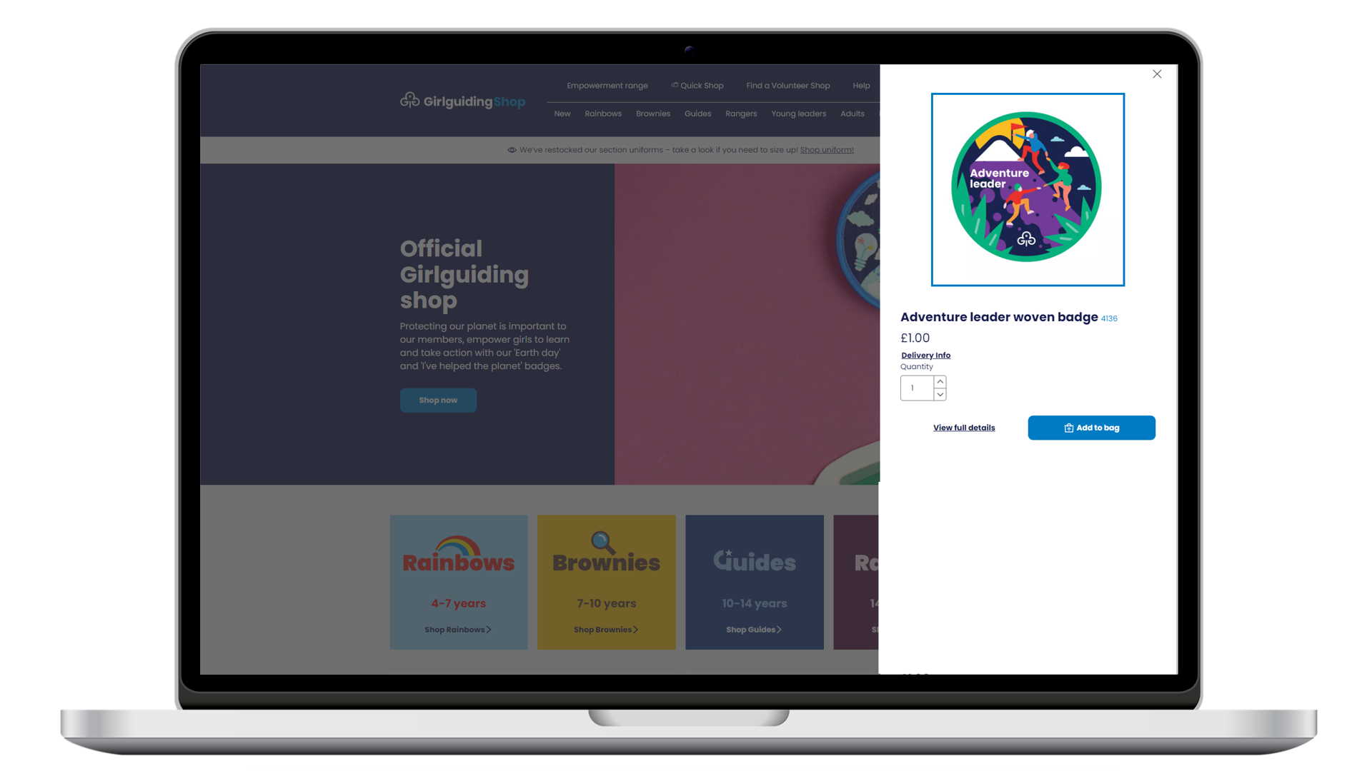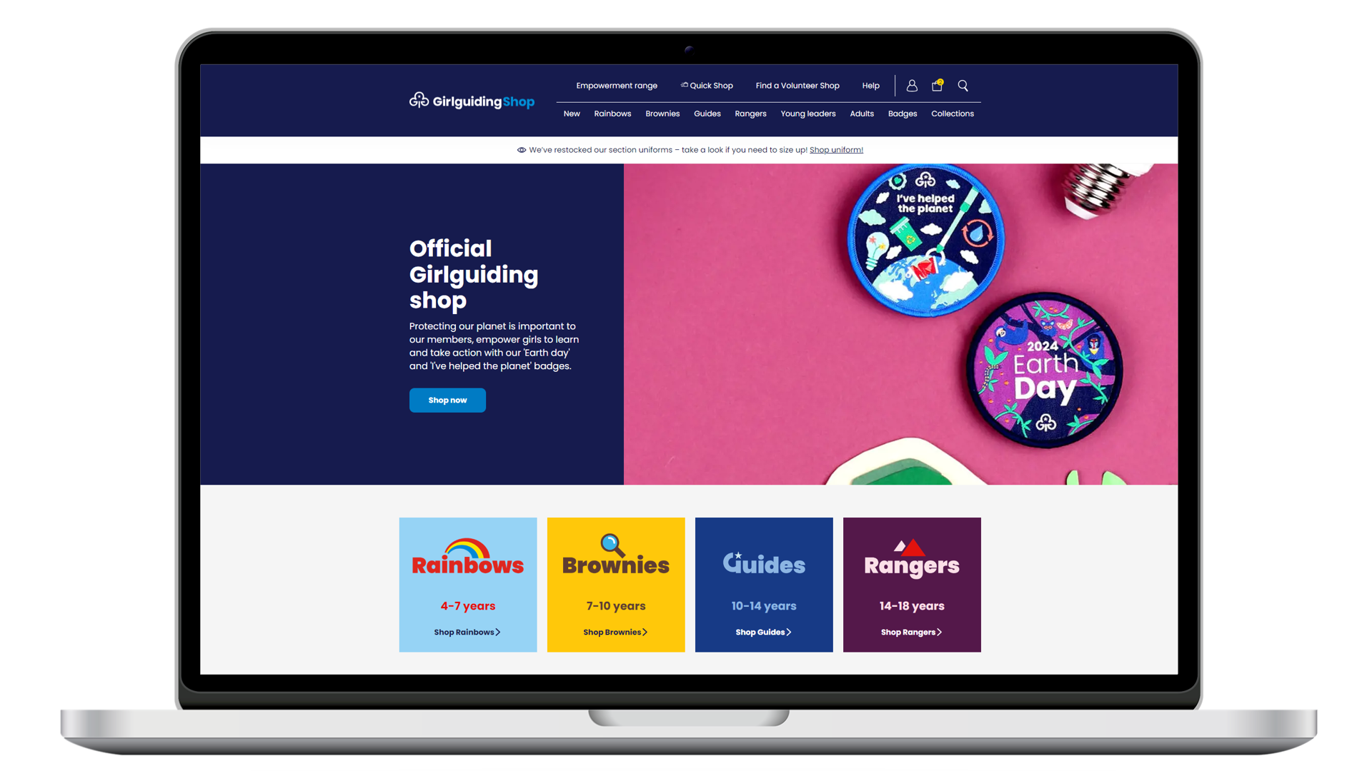 Element78 developed a brand new Girlguiding shop in 2018 to support the relaunch of the charity’s new programme. The platform caters to the needs of a B2C market (individuals/parents/guardians) purchasing from a wide range of SKU’s. The platform also supports the complex needs of their B2B audience (Girlguiding leaders, groups, trade bodies), providing different views of products and purchasing on account.