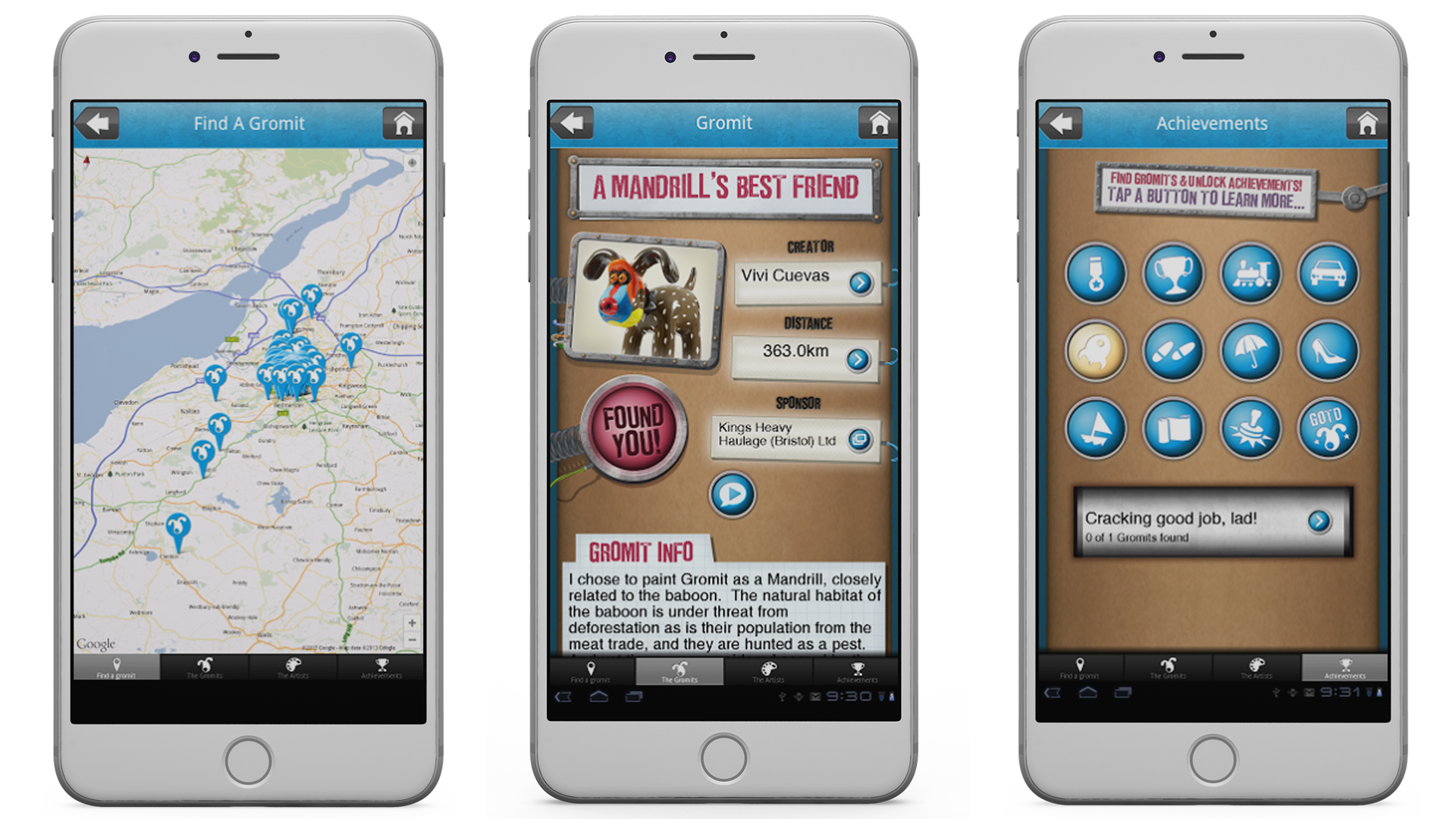 The digital approach revolved around the Detect-O-Gromit App, which was monetised through an integrated website and e-commerce shop. Everything was designed, built, and supported by Element78’s team. The app utilised geo-fencing to motivate people to walk and discover the numerous Gromits. Users could collect a Gromit by standing close to it and adding it to their collection.