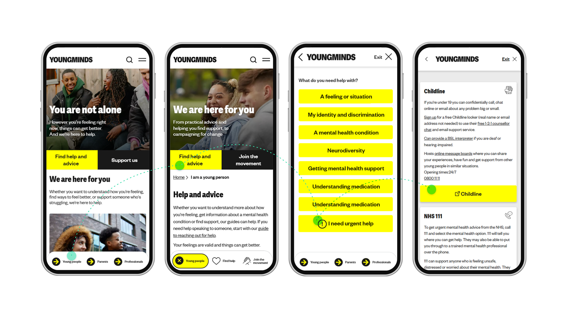 Detailed end-user research informed us that users (young people & parents) visiting the previous website didn’t know where to start, or what they were looking for, due to the complexity of the subject and not understanding much about Mental health.